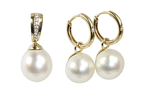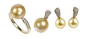 ear pendants, yellow gold 750/000, 4 brilliants white, 2 South Sea pearls diameter = 11.7 mm, height = c. 35.5 mm