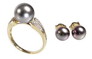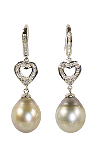 ear pendant, white gold 750/000, ear hook and heart paved with 64 diamonds with baguette and trapezoid cut c. tw-vsi, 2 Tahiti-pearl drops diameter = 11.5 mm, height = 40.5 mm