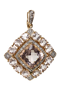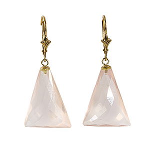 ear pendants, yellow gold 750/000, rose quartz in fantasy-cut (faceted), height = c. 38.0 mm