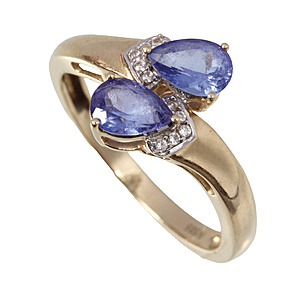 ring, yellow gold 585/000, 2 tanzanite drop c. 1.5 ct (7 x 5 faceted), 10 brilliants white, ring width c. 63