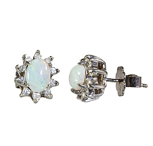 1 Paar Ohrstecker, WG 585/000 (geprüft), 2 Weißopale, 20 Stck. 8/8-kant Diamanten, H = 10,9 mm, total 3,2 g