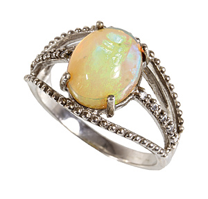 ring, silver 925/000, colorful opal in a three-part shank, ring width c. 50.5