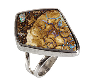 Ring, Silber 925/000, Matrix-Opal in geteilter Schiene, RW ca. 56