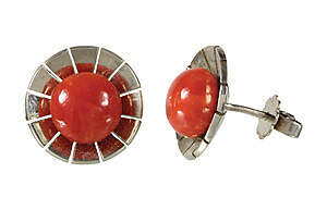 a pair of ear studs, white gold 585/000 (tested), coral buttons diameter = 9.1-9.3 mm, total 6.9 g, unfortunately this item can't be shipped to non-EU countries!