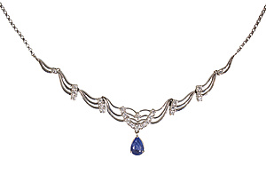 necklace, white gold 750/000, central sapphire drop (faceted) c. 1,3 ct, in wavelike arches are 24 brilliants c. 0.80 ct w-si/p, length = 41.5 cm, total 10.4 g