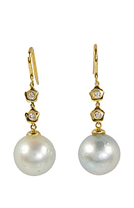 Ohrhänger, GG 750/000, 4 Brillanten weiß, 2 Südsee-Perlen D = 11,7 mm, H = ca. 35,5 mm