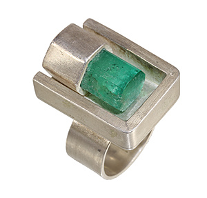 ring, VINTAGE, silver 925/000, emerald crystal in a shiny green, ring head c. 18.9 x 24.4 mm, ring width c. 58 (rail is removable)