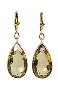 ear pendants (hinged clasp), yellow gold 333/000, 2 citrines pear-shaped (faceted), height = c. 45.2 mm