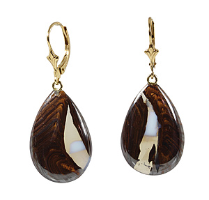 Ohrhänger (Klappbügel), GG 585/000, 2 Opale in Tropfenform, H = ca. 38,5 mm