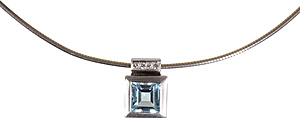 Reif mit Anhänger, WG 585/000, Anhänger mit Blautopas im Carré-Schliff ca. 3,3 g, 4 Brillanten ca. 0,06 ct w-si, H = 17,0 mm; Reif: L = ca. 43,0 cm, total 13,0 g