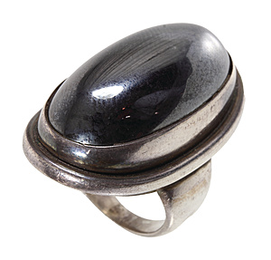 ring, GEORG JENSEN, silver, signed, GEORG JENSEN DENMARK 46 E, haematite, ring head c. 20.5 x 34.0 mm, ring width c. 53