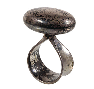 futuristic ring by GEORG JENSEN from the 1960s, silver 925/000, signed, GEORG JENSEN DENMARK 155 TORUN, ring head c. 26.0 x 19.0 mm, grooved ring shank, ring width c. 54, designed by Vivianna Torun Bülow-Hübe