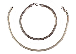 lot: 2 old, heavy worked necklaces from India, silver, 1 x around, 1 x square, thickest necklace, diameter = 8.5 mm, length = 41.0 and 47.0 cm, total 271 g