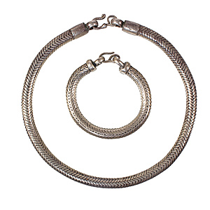 lot: old, heavy worked necklace and bracelet from India, silver, necklace, diameter = 10.3 mm, length = 48.5 cm, bracelet, diameter = 9.7 mm, length = 23.0 cm, total 445 g