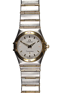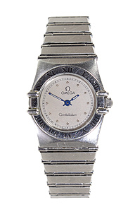 ladies watch, OMEGA Constellation, steel, quartz, dot index, on the bezel Roman numbers, diameter = 23.0 mm, steel strap with folding clasp, watch is running!