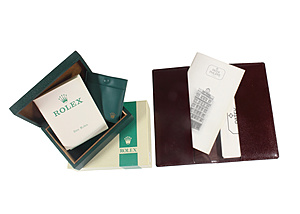 Lot: ROLEX Uhrenbox, ca. 14 x 11 x 6 cm; 1 Etui für Papiere von PATEK PHILIPE, ca. 19,5 x 11,5 cm