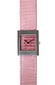 designer ladies watch pink LADY, quartz, silver 925/000, rectangular case, clockface made of leather set with 12 brilliants, snap off case back, c. 23.5 x 28.0 mm, leather watchstrap with silver clasp, watch is running ! unworn !