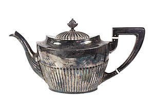 Teekanne 1.Hälfte 20.Jhd., Silber 925/000, sig. G+K, gerippte Wandung, Scharnierdeckel auf der Seite, im Griff Hitzestop, H = ca. 13,5 cm, total 413,6 g