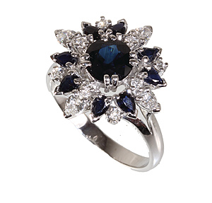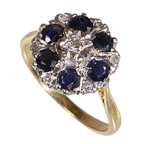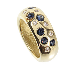 ring, yellow gold 585/000, 6 sapphires (faceted) c. 1.32 ct, 6 brilliants c. 0.3 ct w-si, ring width c. 56, total 9.7 g