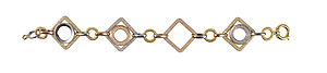 Armband, ROSÉ u. WG 585/000, Quadrate u. Kreise ausgefasst mit weißen Steinen, B = 24,5 mm, L = 19,8 cm, total 15,1 g