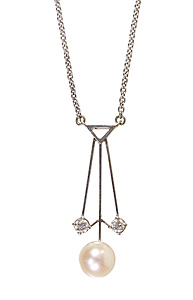 necklace, white gold 585/000, 1 Akoya pearl diameter = 8.0 mm, 2 brilliants c. 0.22 ct tw-si, front: height = 33.2 mm, length = 46.5 cm (intermediate eyelet on 43.0 cm), total 6.0 g