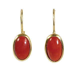 a pair of ear pendants (hinged clasp), Italy 1960/'70s, yellow gold 750/000, 2 corals, height = 24.8 mm, total 3.6 g,  unfortunately this item can't be shipped to non-EU countries!