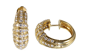 a pair of hoop earrings, yellow gold 750/000, 110 brilliants c. 1.0 ct tw-vsi, width = 8.0 mm (a bit graduated), diameter = c. 23 mm, total 9.4 g