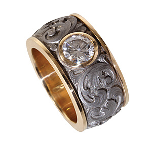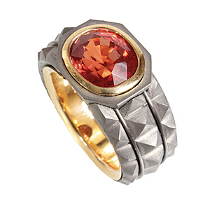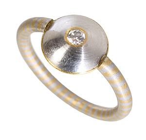 Ring, PLATIN, in der Linse 1 Brillant ca. 0,08 ct tw-vsi, spiralförmig eingearbeitetes FEINGOLD in der Ringschiene, RW ca. 51, total 4,6 g