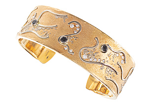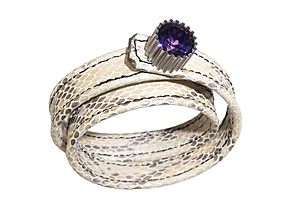 designer bracelet, white gold 750/000, stone setting shaped like corrugated sheet, bordered amethyst c. 6.0 ct (diameter = 12.0 mm), bracelet in snakeskin leather look, can also worn as tight-fitting collar!