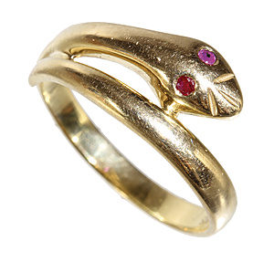 ring snake, yellow gold 585/000, 2 ruby eyes (facet), ring width c. 55