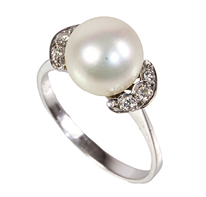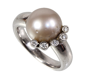 ring, white gold 585/000, central Akoya pearl diameter = 9.5 mm, 6 brilliants c. 0.07 ct tw/vsi, ring width c. 55.5