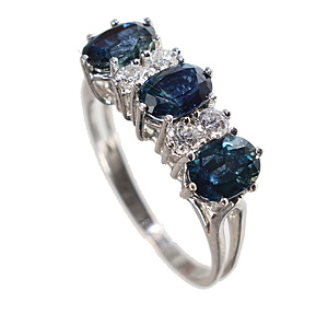 Ring, GG 585/000, 6 Saphire (fac.) ca. 1,32 ct, 6 Brillanten ca. 0,3 ct w-si, RW ca. 56, total 9,7 g