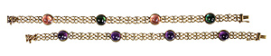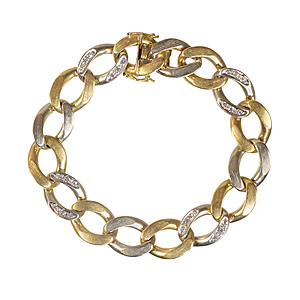 bracelet, rosé and white gold 585/000, squares and circles paved with white stones, width = 24.5 mm, length = 19.8 cm, total 15.1 g