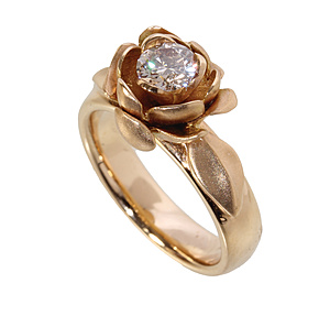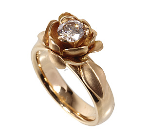ring, yellow gold 585/000, rose quartz with embedded garnet (faceted), 8 pieces 8/8-cut diamonds, ring head 16.0 x 21.9 mm, ring width c. 60