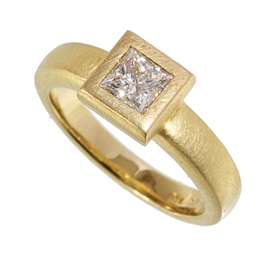 ring, yellow gold 585/000, signed A.K., 1 aquamarine (faceted) c. 4.0 ct, c. 12.5 x 9.0 mm, (setting with milgrain edge), ring width c. 52
