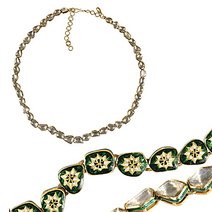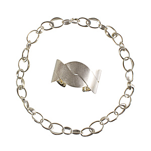 designer necklace, platinum, signed K.RU, middle course workes as brooch, 10 blue brilliants c. 0.9 ct on a wavy surface, fine crystalline chalcedony, brooch: c. 56.0 x 47.0 mm. plastic cord c. 86-fold with patent clasp (Heinz clasp), all in all length = 48.0 cm