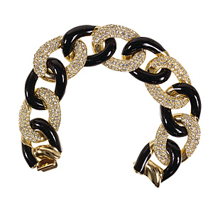 Armband, CHR.DIOR, Metall goldfarben, signiert Chr. Dior, große Kettenglieder, die abwechselnd schwarz emailliert und strassbesetzt sind, B = 2,5 cm, L = ca. 21,0 cm