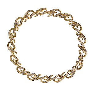 necklace by ELIZABETH TAYLOR (signed), gold-colored metal , from the series ETERNAL FLAME, lavishly jeweled with colorless rhinestone, width = c. 1.8 cm, length = c. 45.5 cm