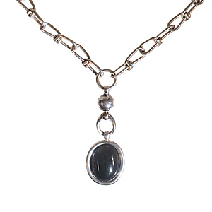 Anhänger, Silber 925/000, sig. Grosse 1973 Germany, schwarzer Stein, H = 92,0 mm; Kette, Silber (geprüft), L = 50,5 cm, total 82,0 g