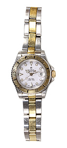 Ladies wristwatch, TUDOR (Rolex) princess DATE LADY SUB., 1990s, steel/gold, self-winding, central second, date below sapphire magnifying glass, screwed crown and back, bezel with '60s division (turnable), diameter = 27.5 mm, watchstrap steel/gold with folding clasp (604), worn, watch is running !