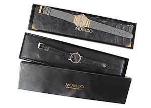 lot: 1 Ladies' wristwatch from 1994, quartz, MOVADO Museum, steel, guarantee card, 1 men's wristwatch, quartz, MOVADO, steel/gold, screw watch back diameter = 29.0 mm, original caskets, unchecked !