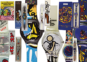 lot: 5 SWATCH-watches from the MONTREAUX JAZZ FESTIVALplus 1 CD, 1 SWATCH-GK388 RHYTMICAL MOOD MONTREAUX, BluebDial/Musicians on Band, 1 SWATCH GN191, special packing, 1 SWATCH GE 184, 1 SWATCH from 2004, 38TH JAZZ FESTIVAL, 1 Swatch GN 212 (2003), 1 CD THE MONTREUX DREAM, jazz festival, all unchecked !