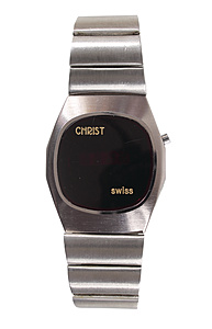 rare men's wristwatch, VINTAGE LED 1970s, CHRIST, digital, chrome, diameter = 32.8 mm, steel strap with folding clasp, unchecked !