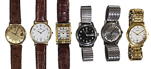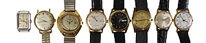 lot: 8 watches, 1 x TIMEX (is running), diameter = c. 31.0 mm, 1 x JUNGHANS (is running), 1 x ANKER, 1 x BLUMUS de Lux, self-winding, 1 x CONTINENTALE, 1 x JUNGHANS (square case), 1 x REVISTA with steel strap (is running), 1 x VINTAGE, ANCORA self-winding with oval case c. 31.5 x 32.2 mm, watches weren't checked !