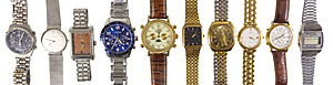 Lot: 6 Uhren, 1 x JAQUES LEMANS REVERO, Gold plattiert, röm. Index, Perlmutter Ziffernblatt, 1 x MAURICE LACROIX, arab. Zahlen, Dat. auf 6 Uhr (Uhr läuft !); 1 x OMEGA de VILLE, Automatik, Strichindex, D = 31,3 mm (Uhr läuft !), alle mit Lederband und Dornschließe; 1 x C. MELCHERS, goldfarben mit Faltschließe; 1 x Handaufzug, ROAMER anfibio, arab. Ziff., zent. Sek., Dat. auf 3 Uhr, D = 31,5 mm, Zugband (Uhr läuft !); 1 x ROAMER mit Zugband, Uhren ungeprüft !