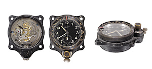 airforce military-dashboard clock WK II, construction year 1938-1940, JUNGHANS FL 23885, N° 20618, manual winding, turnable bezel, blackened case, diameter = c. 61.3 mm, blind flight clock with chronograph, watch must be overhauled