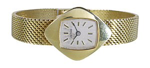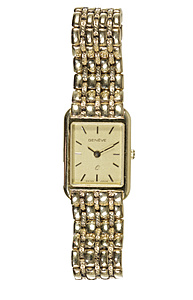 Ladies' wristwatch from 1995, GENEVE, quartz, yellow gold 585/000, gold colored clockface with stick index, screw back, case c. 19.4 x 24.0 mm, folding clasp, length = 17.5 cm, total 49.2 g, watch is running !