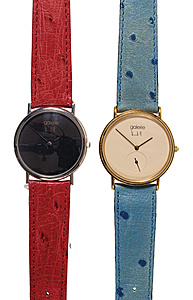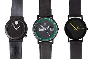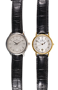 lot: 1 x MILUS 0311, (Design C&F Hertig), diameter = 29.5 mm, reference: 510.002, 1 x MILUS 3167, (Design C&F Hertig), diameter = 33.0 mm, reference: 510.001, both with black anodized steel housing, black clock-face, snap off case back, leather watchstrap with pin buckle, all unworn, from a liquidation !