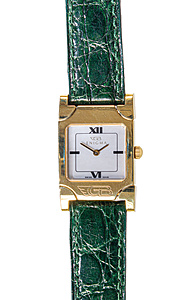 Ladies' wristwatch, yellow gold 750/000, ENIGMA created by GIANNI BULGARI, quartz, mother of pearl clock-face, case c. 20.0 x 31.0 mm, reference: 533-301G (001/195), original crocodile leather watch strap with pin buckle (yellow gold 750/000), as good as new from a liquidation !