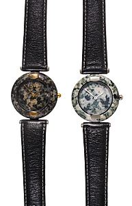 lot: 2 wristwatches with stone case, ALPINA, quartz, black and grey granite, 1 x ALP-WATCH, 1 x Alpina, diameter = 30.4mm and diameter = 32 ,0 mm, both with leather watchstrap and pin buckle, unworn, from a liquidation !